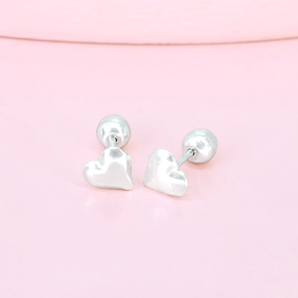 Aretes modelo Corazón Clásico con broche tornillo, elaborado en plata