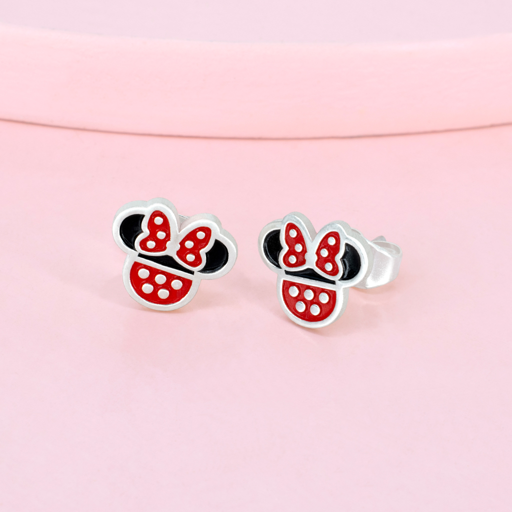 Aretes modelo Minnie con broche presilla, elaborado en plata