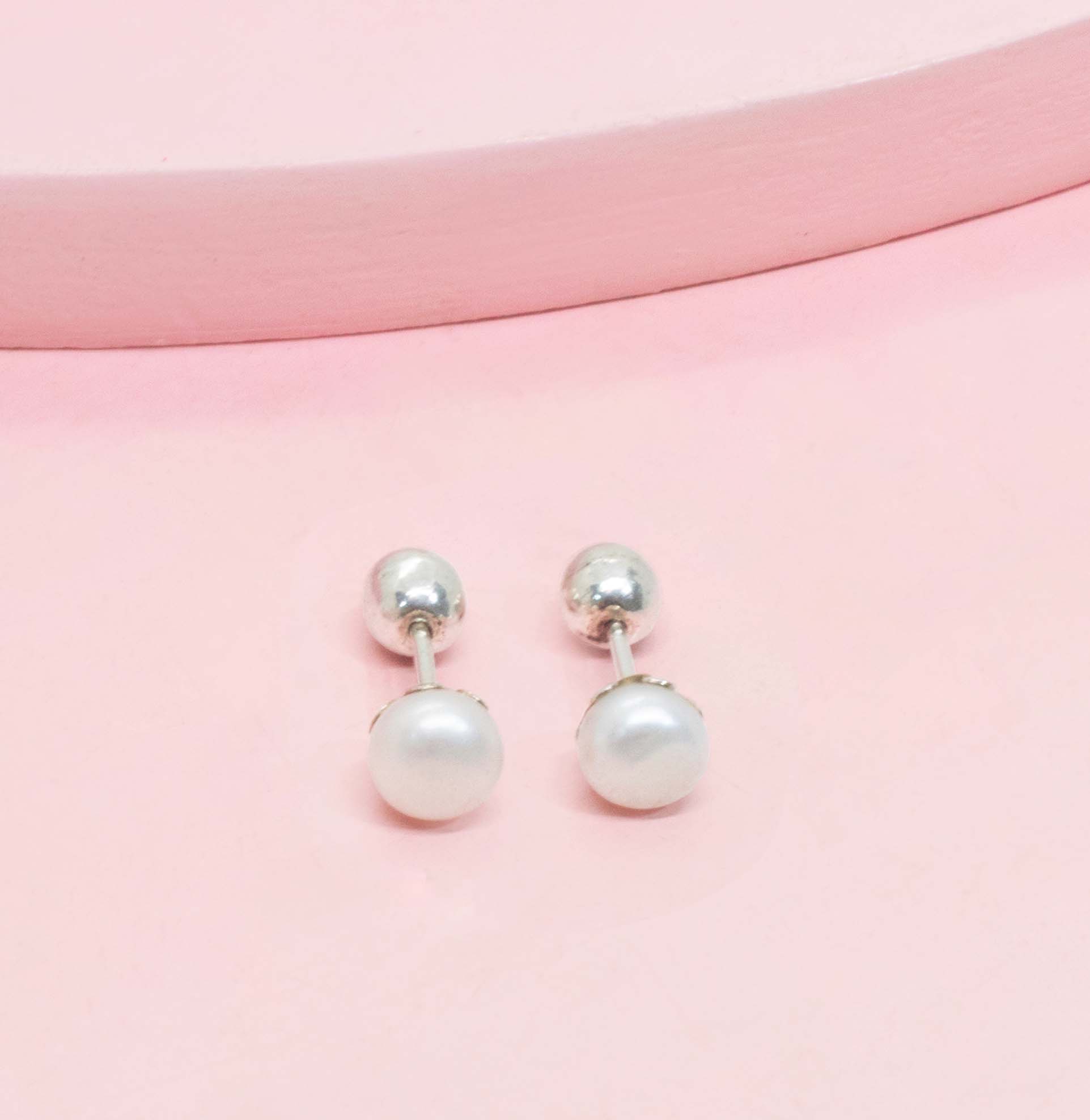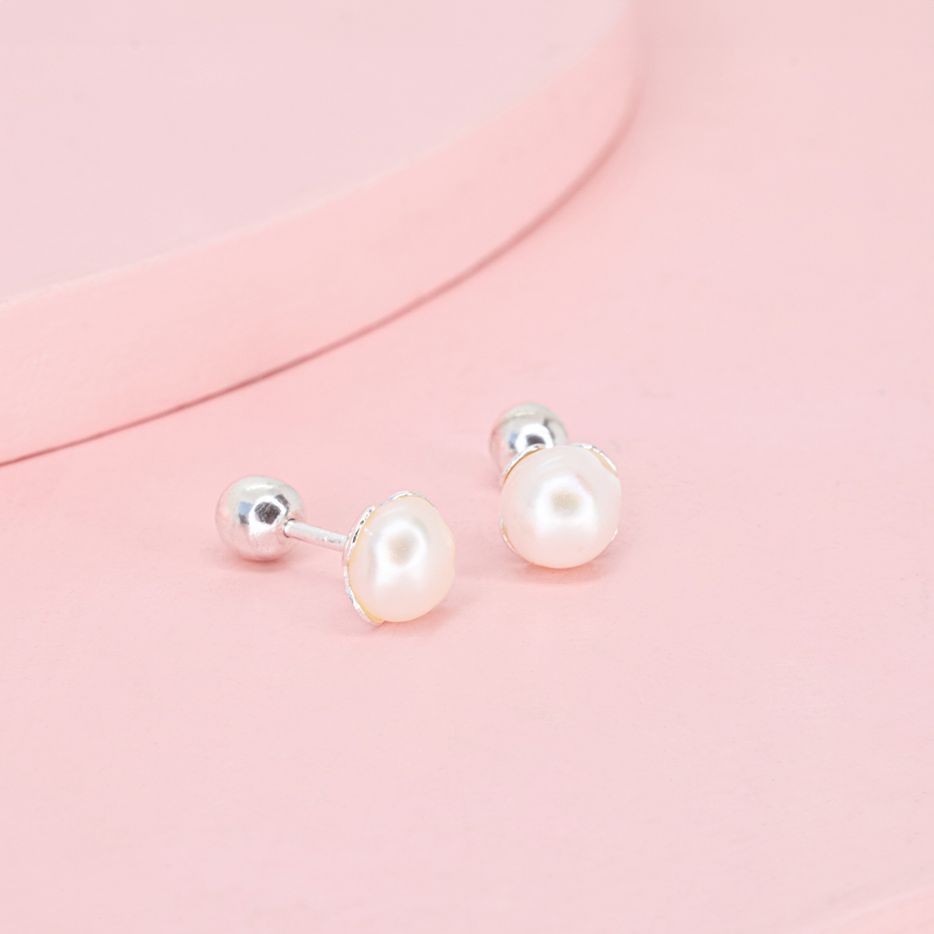 Aretes modelo Perlita Básica con perla de río y broche tornillo, elaborado en plata