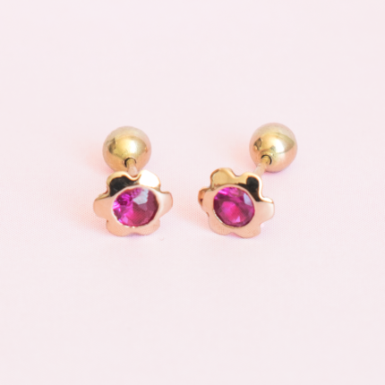 Argollas con cierre a presión, con dije de roseta colgante, elaborada en acero con baño en oro 18k