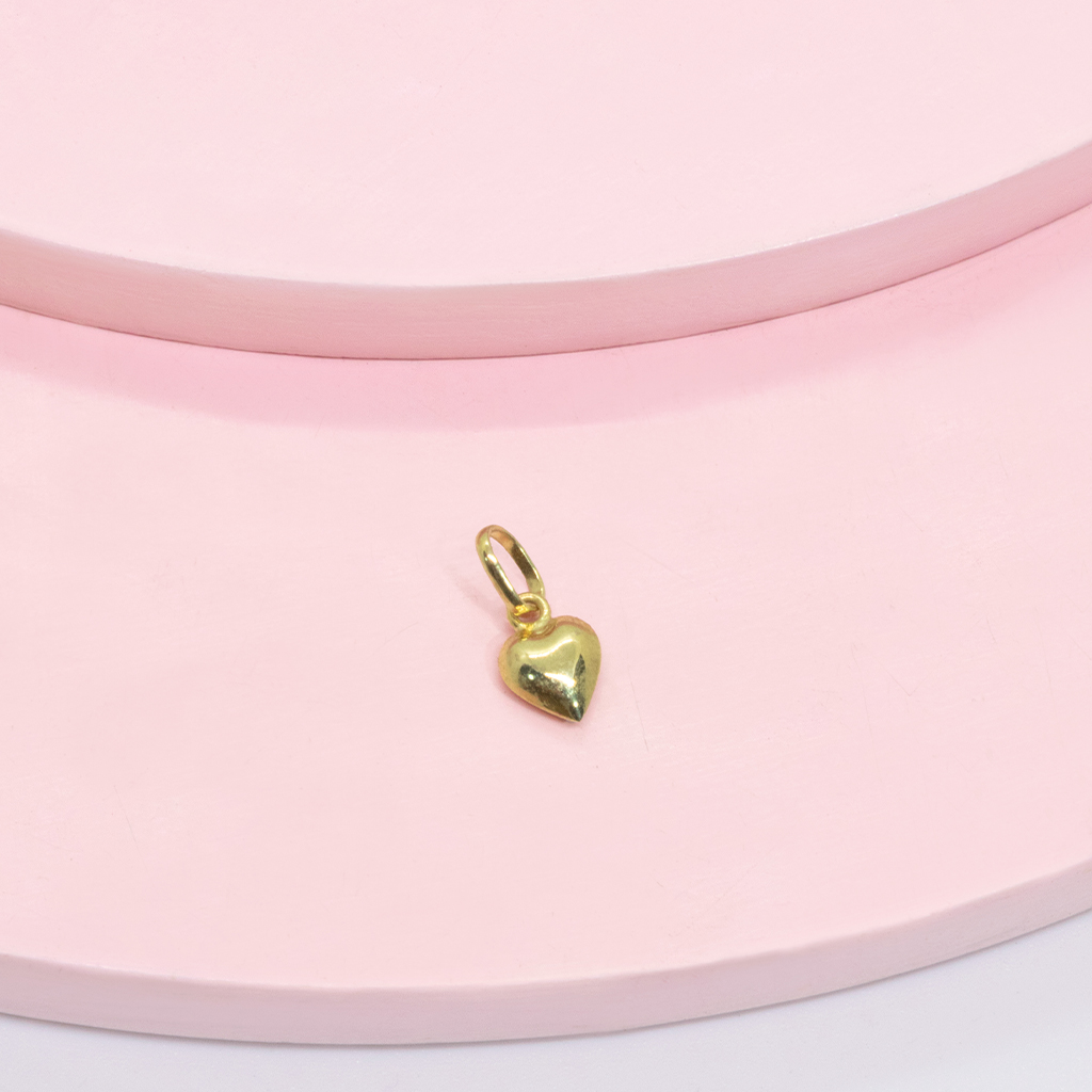 Corazón bombeado, elaborado en plata enchapada oro 18k.
