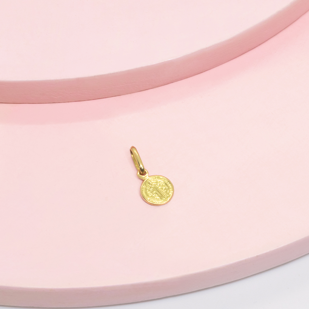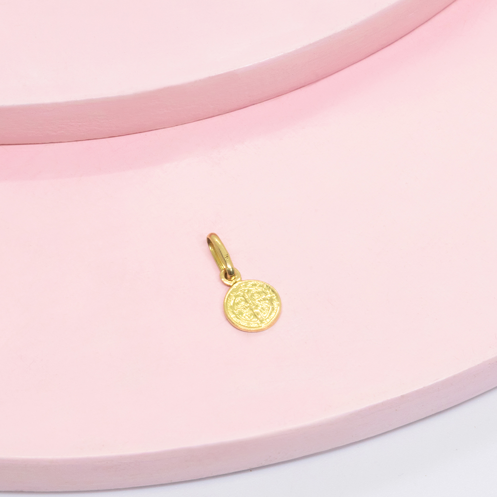 Dije Medalla San Benito doble cara, elaborado en oro.