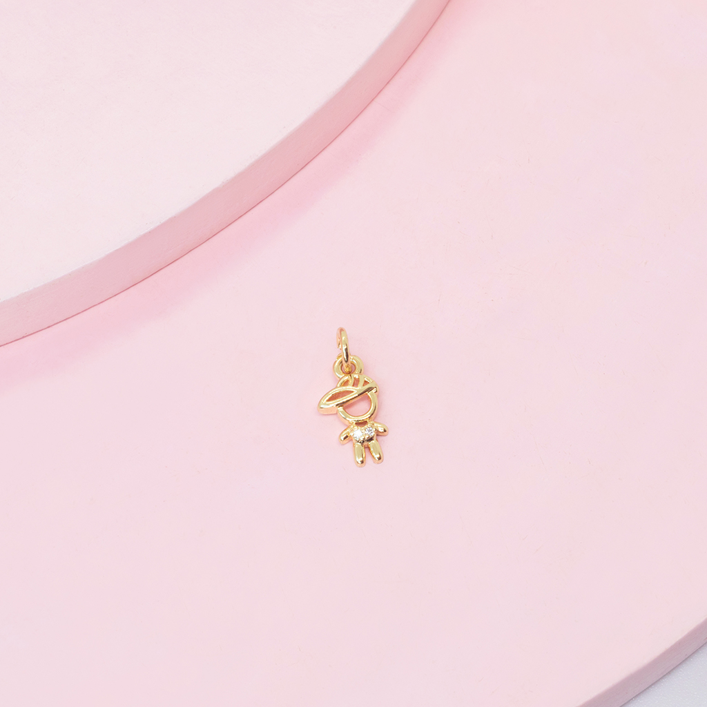 Dije niño calado con gorrito, elaborado en acero enchapado.