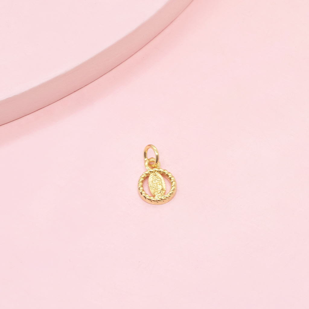Virgen de Guadalupe calado en circulo y borde trenzado. Perfecto accesorio para tu joya. Simboliza la constante esperanza y los milagros que se pueden experimentar a través de la fe. Lleva contigo la presencia amorosa y protectora de la Virgen.