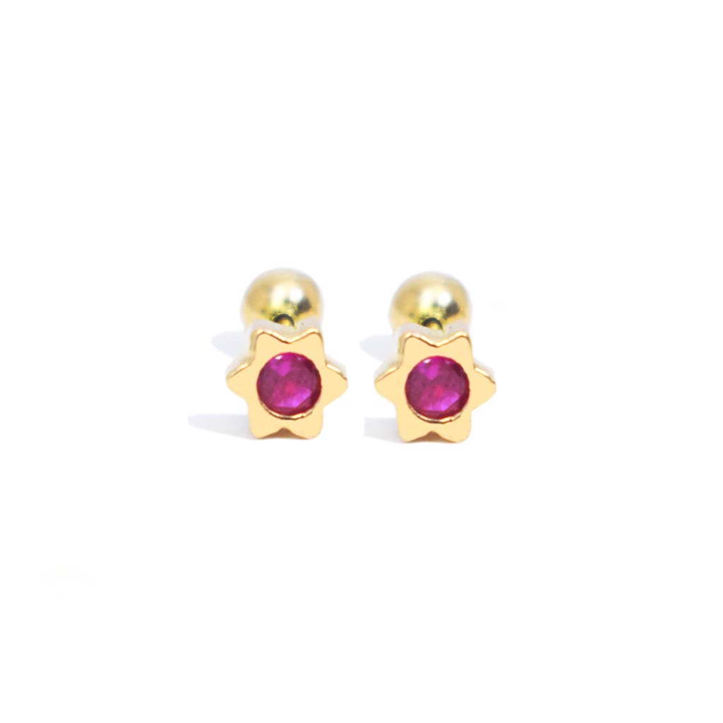 Estrella Belen 6 Lados con seguro tornillo oro 18k