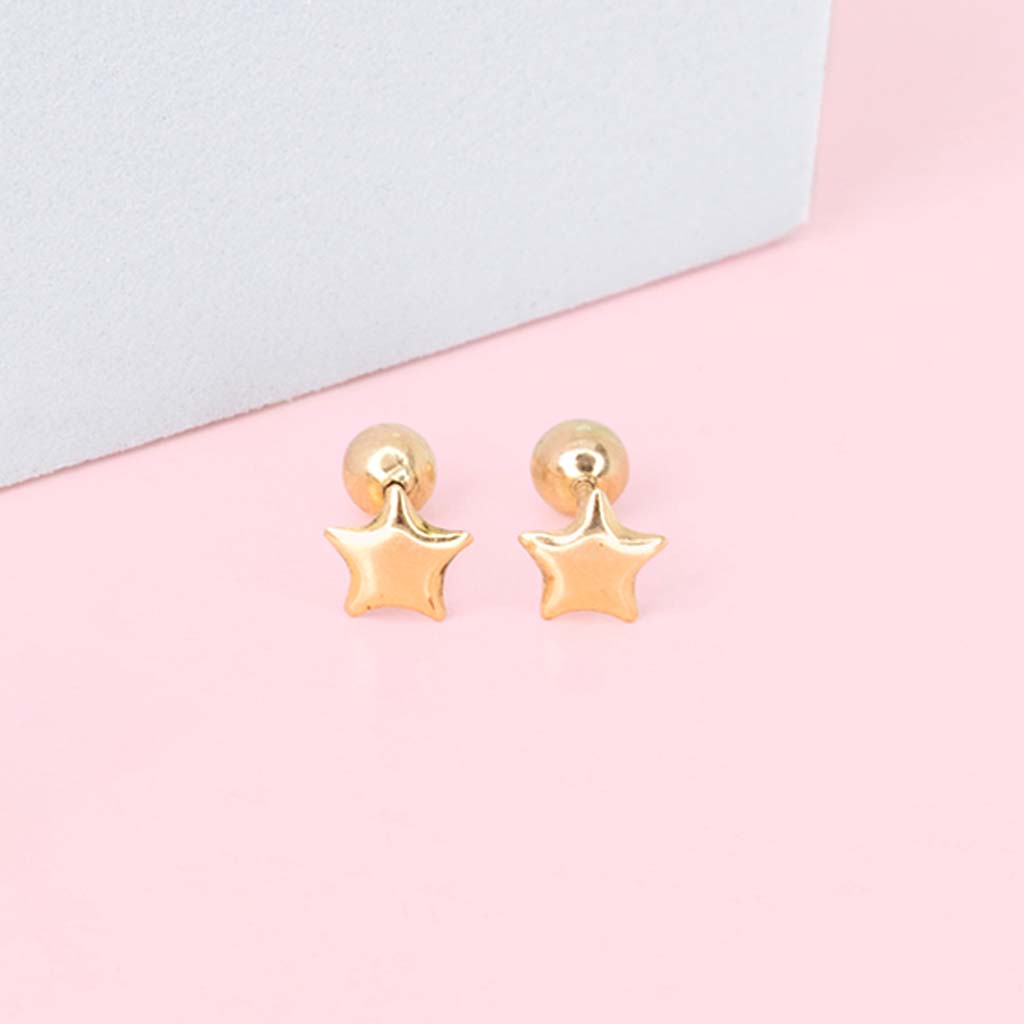 Estrella Bombeada con seguro tornillo oro 18k