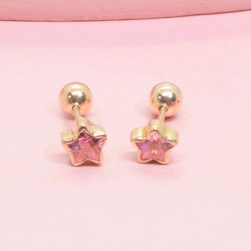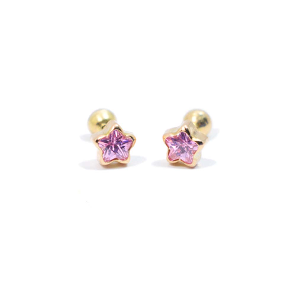 Estrella Dúo con broche tornillo de oro 18k