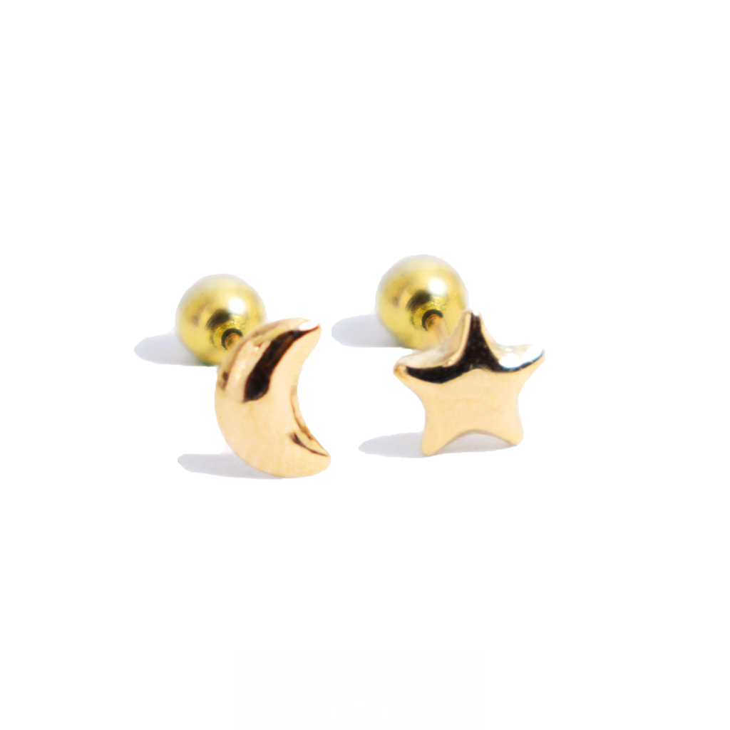 Estrella Luna con seguro tornillo oro 18k