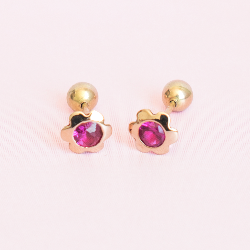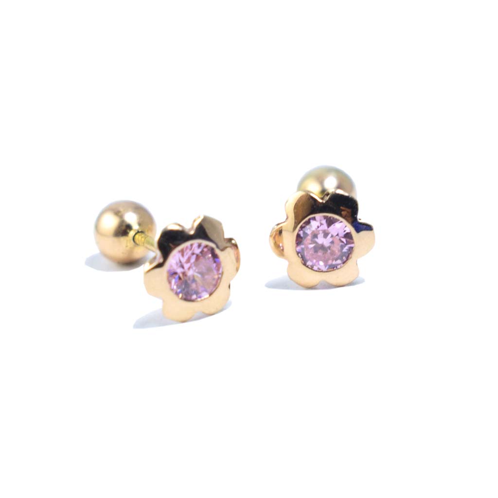 Flor Luz con circon y broche tornillo de oro 18k