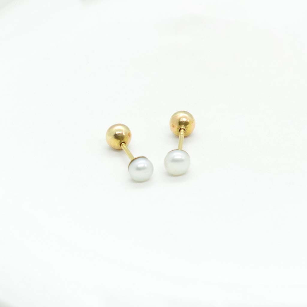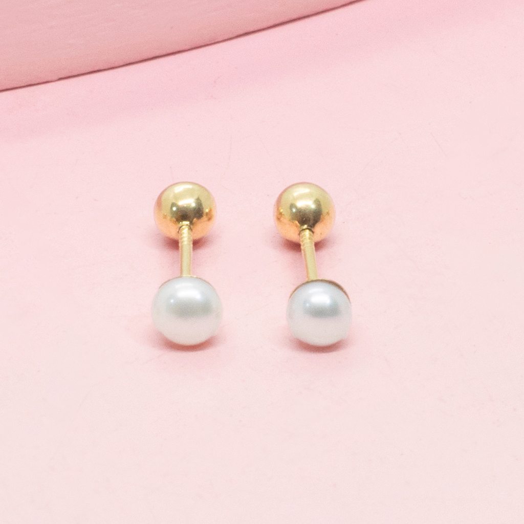Arete de perlita cultivada de río con seguro tornillo oro 18k