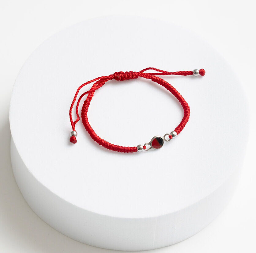Pulsera tejida a mano con accesorio de huayruro con borde d plata de ley