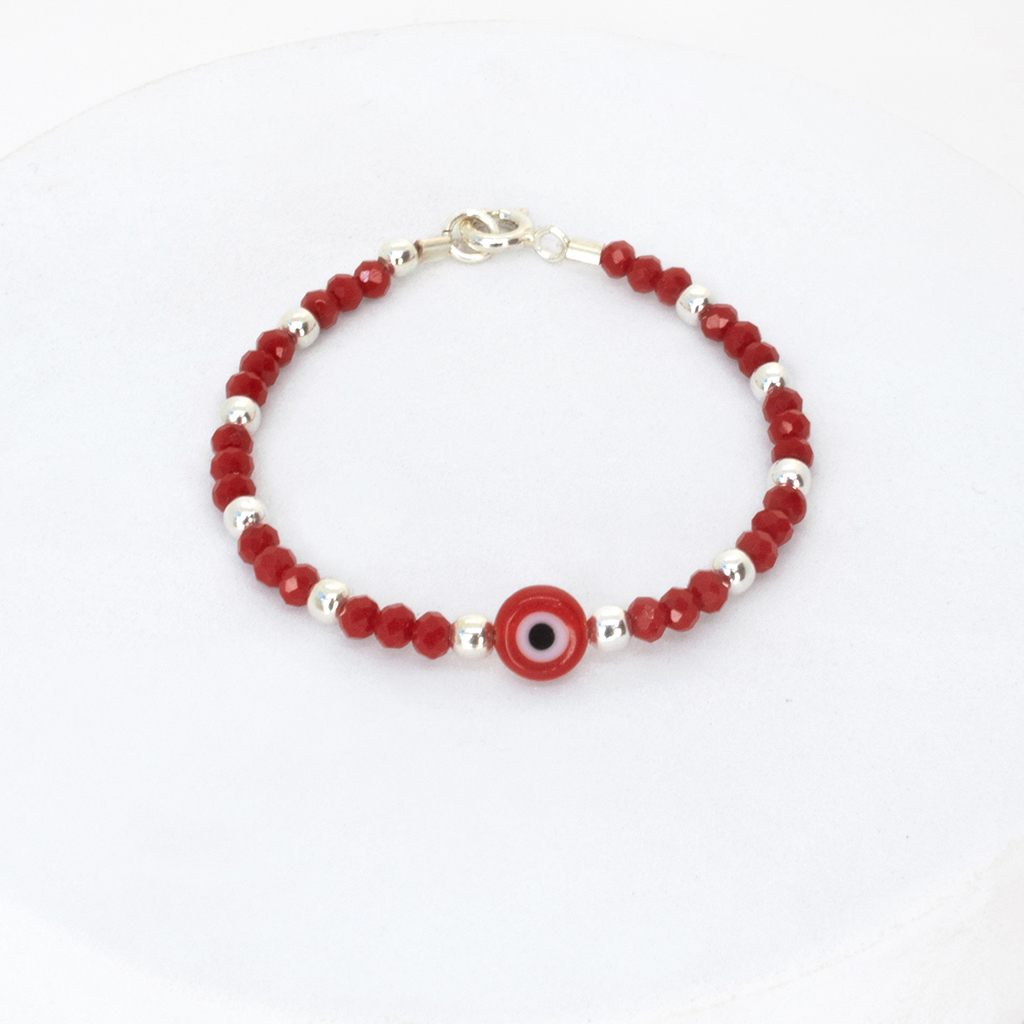 Pulsera de muranos y ojo turco rojo, elaborado en plata.
