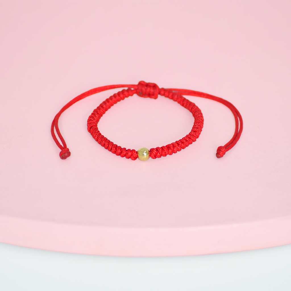 pulsera protectora tejida con una bolita en oro 18k, es tejida a mano y regulable, se adapta a la muñeca de tu pequeña, o ideal tambien para adulta.