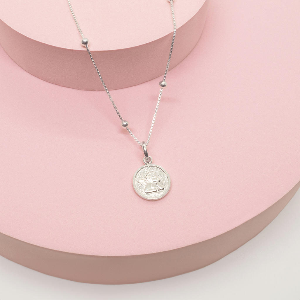 Set, Choker y dije Ángel de la guarda, elaborado en plata.