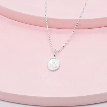 Chocker de 40cm. con bolitas y dije del Ángel de la guarda en circulo con relieve. Simboliza protección, guía y cuidado espiritual. Recordatorio constante de que siempre están acompañados y protegidos.