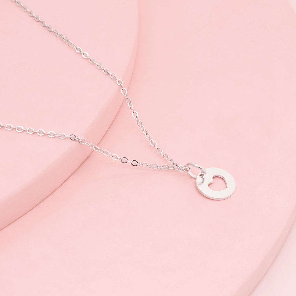 Set, cadena y dije de corazón calado en circulo plano.