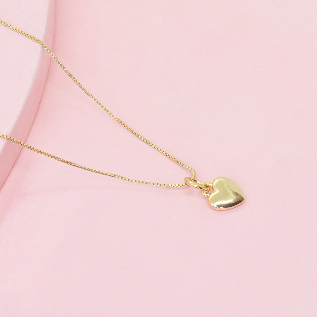 Cadena y dije de corazón semi bombeado liso.