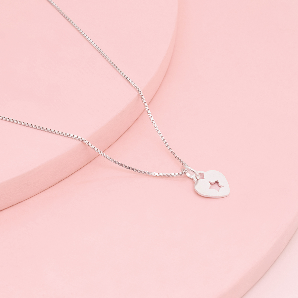 Set, cadena y dije estrella calada en corazón, elaborado en plata.