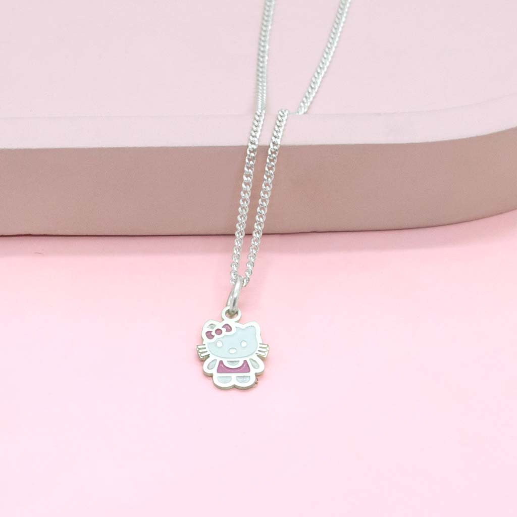 Set cadena y dije Hello Kitty con acabados de colores, elaborado en plata