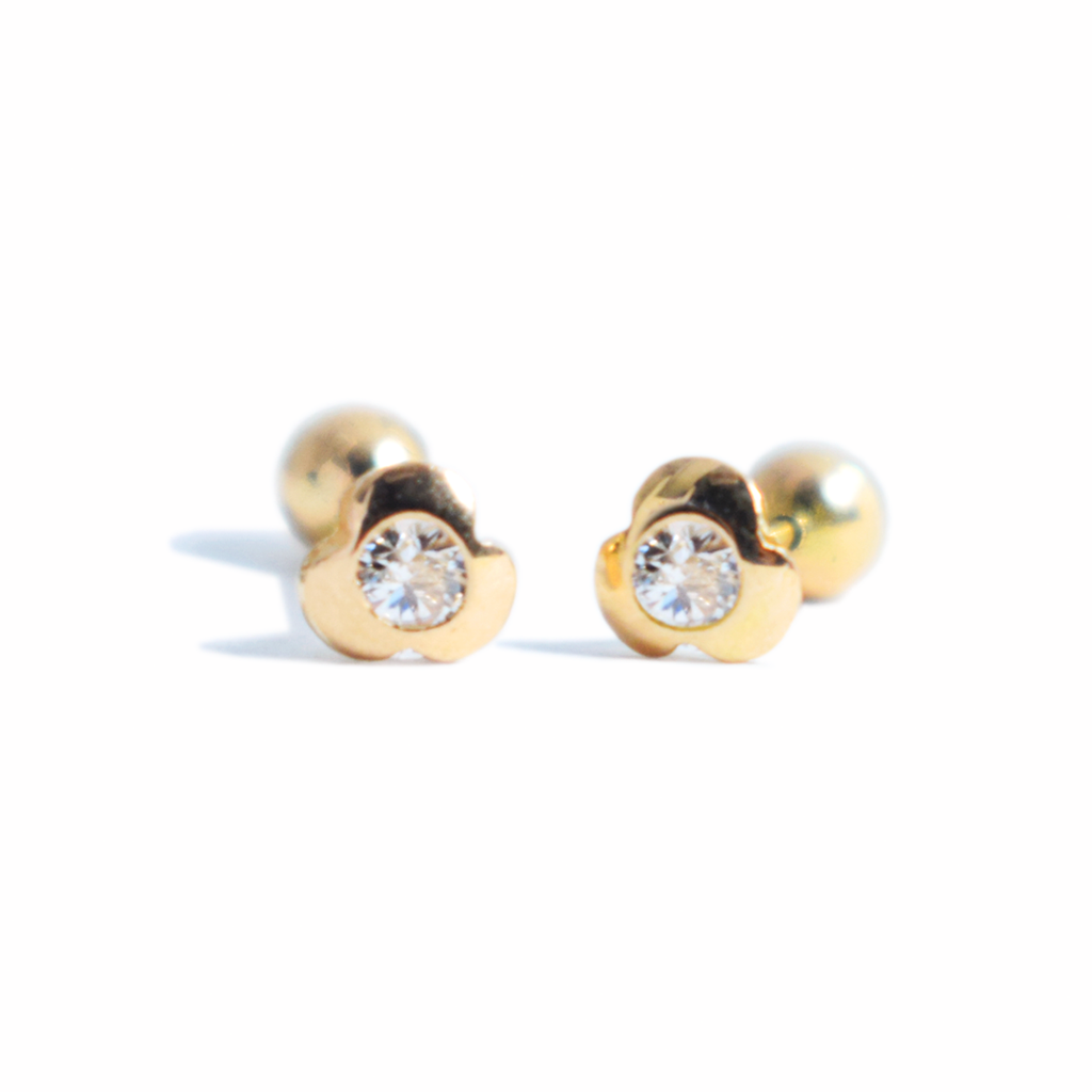 Aretes Trébol Luz 3 lados Tornillo Oro 18K
